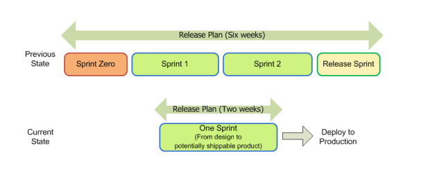 One of my product teams has been successful in deploying to production once in every two weeks. In the past, our release plan would comprise of a sprint zero, one or two working sprints, followed by a release sprint. We were essentially releasing features to end-users once in every six weeks or more. Our product features is critical to the business. With a primary objective of learning, adapting and reapplying changes quickly, our product team migrated to a shorter release cycle thereby developing and deploying for each sprint.
